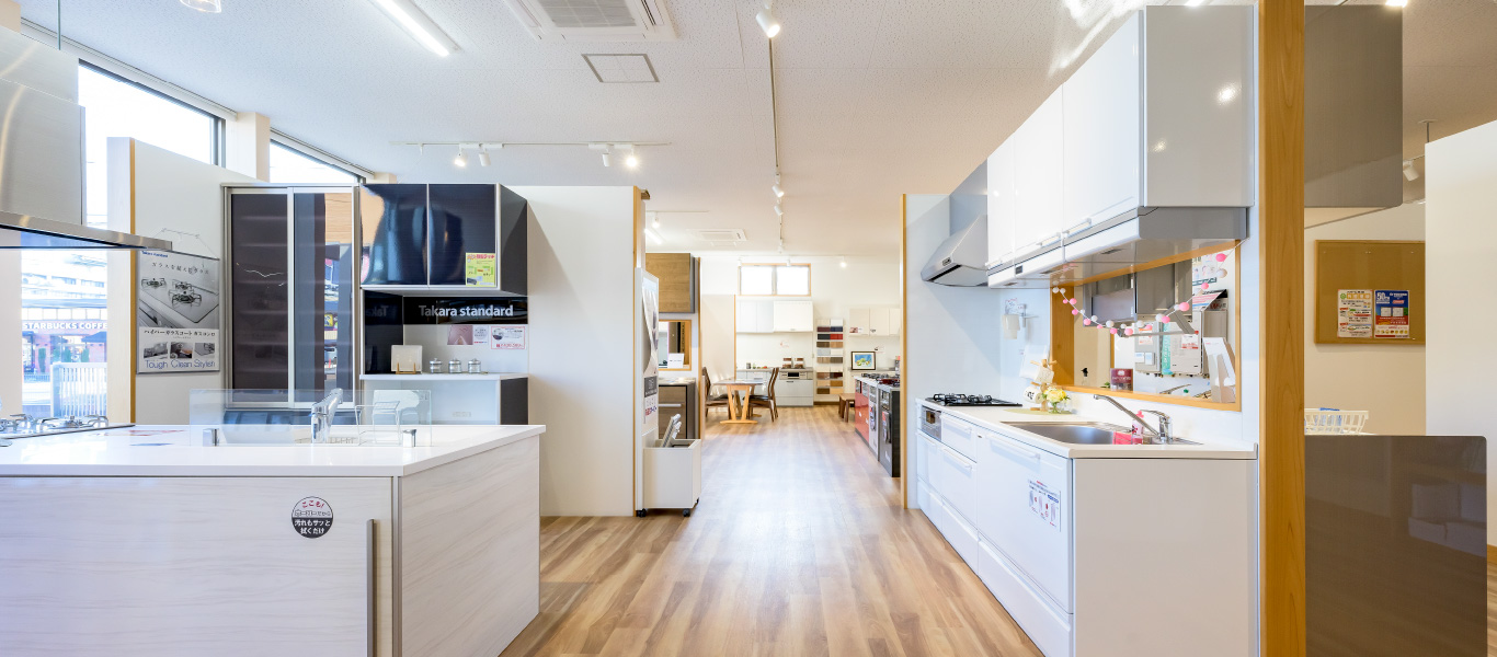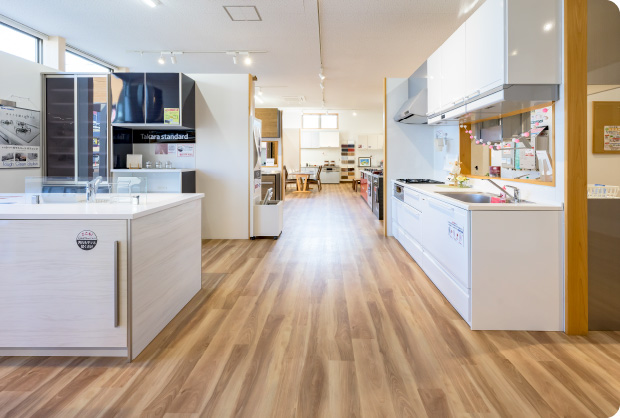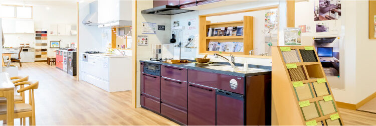 水回りや内装、外構・エクステリア、外壁まで、ドアノブ交換・トイレ交換などの小さなものから全面改修工事まで、リフォームを手掛けています。ショールームで最新設備機器を見比べながら、気軽に住まいの悩みごとをお話しください。